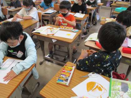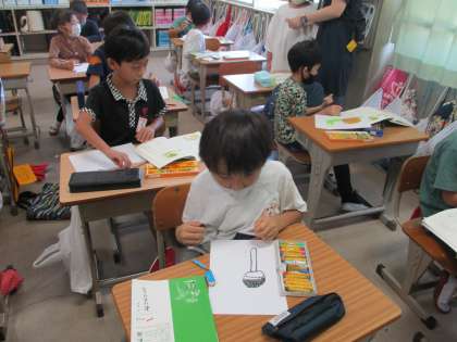 「お手紙」の寸劇のため,自分の役割の絵をかきました。