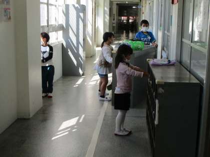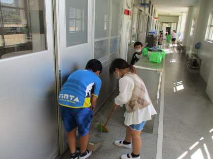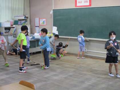 そうじの時間です。1年生の子どもたち,教室や廊下,靴箱を一生懸命に掃除していました。そんな姿に,また一つ大きな成長を感じ,うれしかったです。これからもがんばれ。
