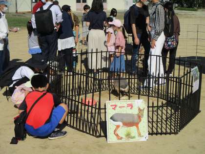 今日は,東校区まちづくり委員会が主催する「子どもふれあいフェスタ」が3年ぶりに開催されました。コーナーは「鉄道模型の体験」,「ふれあい動物園」,「ミニSL」