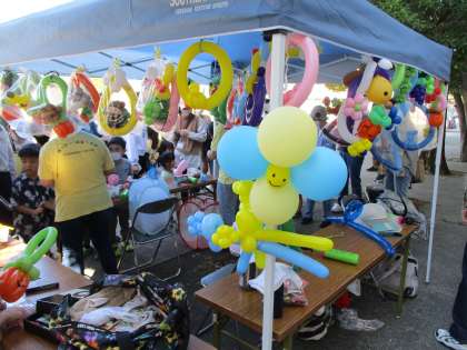PTA・子供会・こども園・保育園による「縁日の遊びの出店」,「バルンアート」。