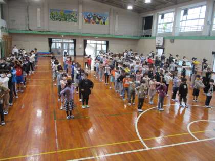 校長先生が1年の後半の目標について話をしました。そのあと生徒指導の意先生が1年の後半の生活目標について話をしました。