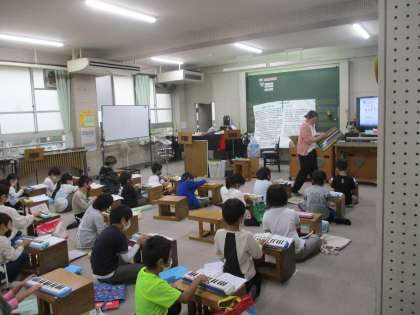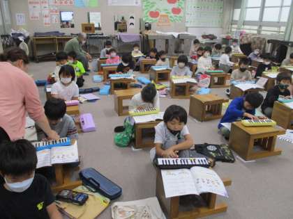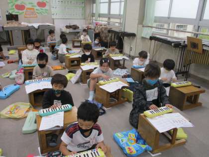 「山のポルカ」の学習で,鍵盤ハーモニカの運指の練習をしました。