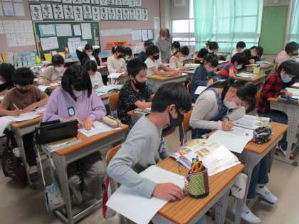 社会科の時間です。「戦国の世の統一」を勉強しました。そのまとめとして新聞づくりにチャレンジ。織田信長を中心に,教科書や資料集,タブレットを使って調べました。どんな歴史新聞ができたか楽しみです。