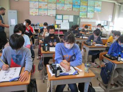 創作漢字を考えて,小筆で書きました。