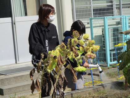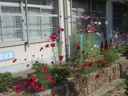 栽培委員会が毎日水やりをしてくれています。学習園には,コスモスがきれいに咲いていています。ほかの花も咲いていて,秋を感じました。委員会のみんなのお世話のおかげです。ありがとう。