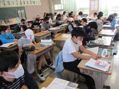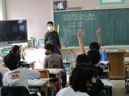 社会科の時間です。「日本の貿易とこれからの工業生産」について勉強しています。めあては「日本を支える工場について考えよう」。とくに,中小工場について取り組みました。日本の工業生産の特徴に気が付いたかな?