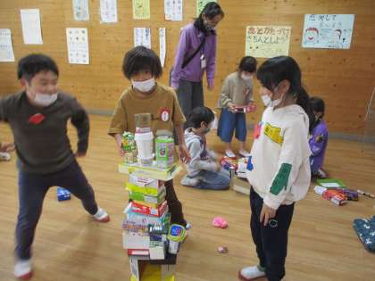 空き箱など身の回りにあるもので,いろいろなものを作りました。