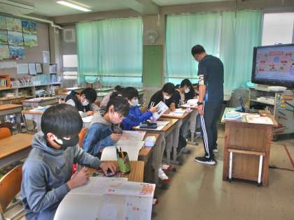 2つのグラフを見て,A・Bどちらのチームが歩く速度が速いか考えました。