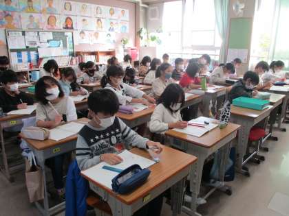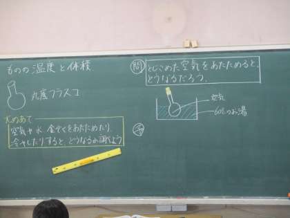 ビーカー内の閉じ込められた空気を温めると,どんなことが起こるか予想しました。