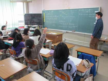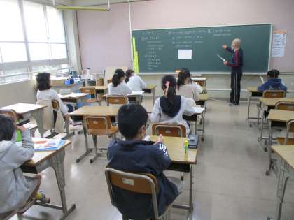 算数の時間です。「式と計算」を勉強しています。めあては「復習をしよう」。確かめ問題にチャレンジ。答え合わせでは,先生と友だちとで学習したことを確認。しっかり復習できたかな?