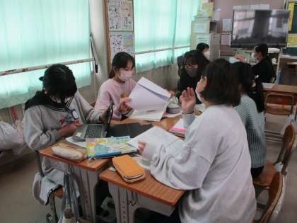 調べたことをもとにどのよう様なパンフレットを作るかグループで話し合いました。