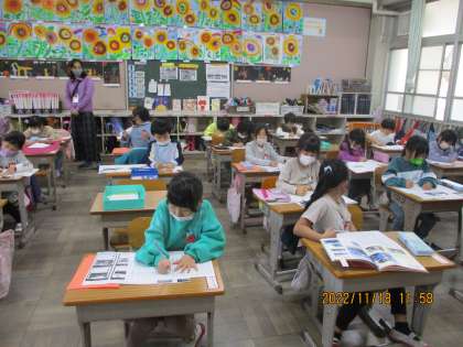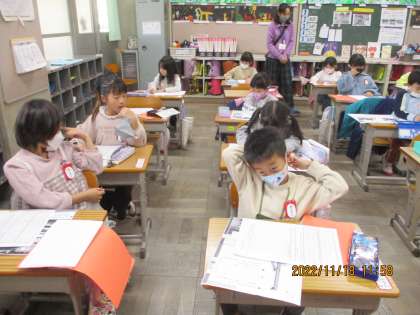 「じどう車しらべ」の学習でお気に入りの自動車について調べ,調べたことをワークシートに書きました。