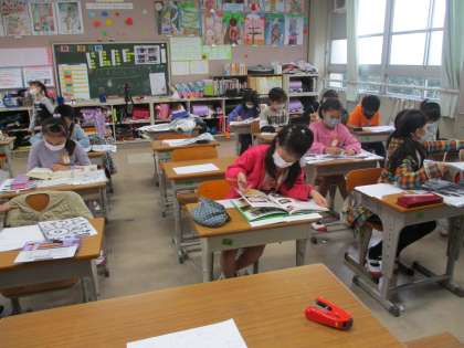 事典を見ながら,食べ物の秘密をワークシートにまとめました。