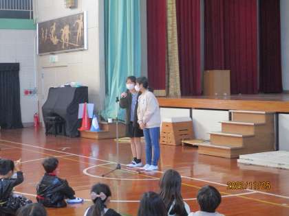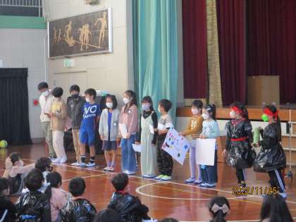 東っ子フェスティバルの前に開会式をしました。まず校長先生がエールの言葉がけをしました。次各教室の出し物のアピールをしました。最後の諸連絡を聞き,準備を始めました。