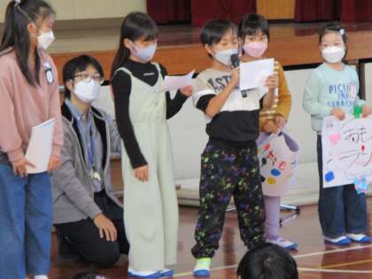 11月25日(金)に,3年ぶりに「東っ子フェスタ」をやりました。どのクラスも,仲間とアイデアいっぱいのコーナーを準備,当日もがんばりました。子どもたちの顔からは「力いっぱいがんばった」「楽しかった」という気持ちを感じました。一人ひとりが一生懸命がんばり,「東っ子フェスタ」は大成功。そこで,子どもたち全員を「がんばる東っ子」として紹介します。とってもがんばったね。