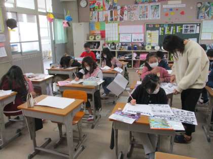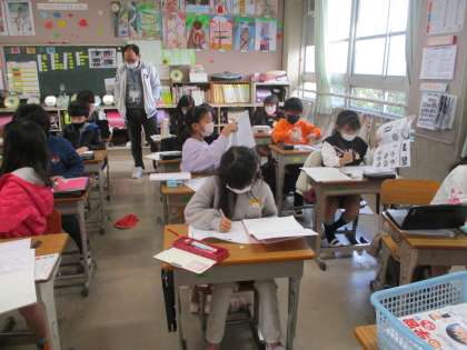 「食べ物のひみつ教えます」の学習で,食べ物について調べたことをワークシートにまとめました。