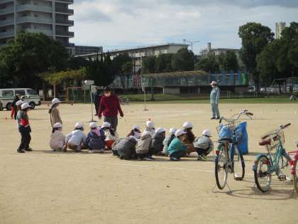 堺警察と市役所の方に正しい歩行の仕方を教えていただききました。