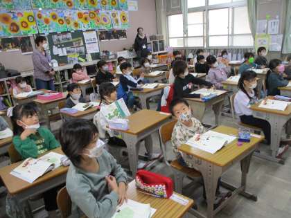 道徳の時間です。「おかゆのおなべ」というお話を勉強しました。めあては「どんなお話かたしかめう」。おばあさんからもらった不思議なおなべ。お話からどんなことが<分かったかな?