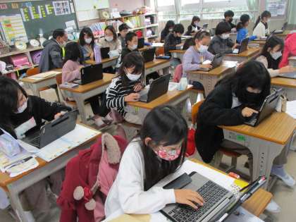特活の時間です。タブレットで誕生日カードに取り組みました。12月の誕生日の友だちへのおめでとうのメッセージ。どんなカードができたかな?きっと素敵なカードができたと思います。