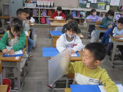 連絡を書き,プリントをファイルに閉じました。