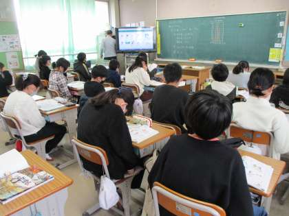 算数の時間です。「資料の調べ方」を勉強しています。めあては「問題を見つけよう」。「身近な問題・興味・関心」をポイントに,調べたいことやデータのことを確認。新金岡東小学校の子どもたちのことの資料作りに取り組みます。どんな特徴がわかるかな?楽しみですね。