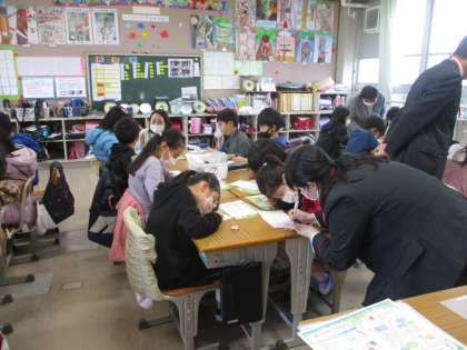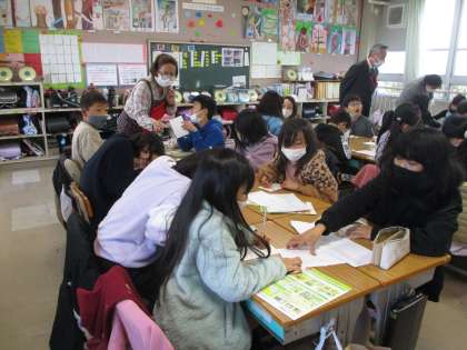 金岡郵便局の方に年賀状の書き方を教えていただきました。