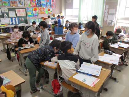 2時間目,教室におじゃましました。算数のテストを返してもらい,まちがい直しをしました。わからないところは,友だちがサポート。まちがったところができて,うれしそうでした。がんばりましたね。