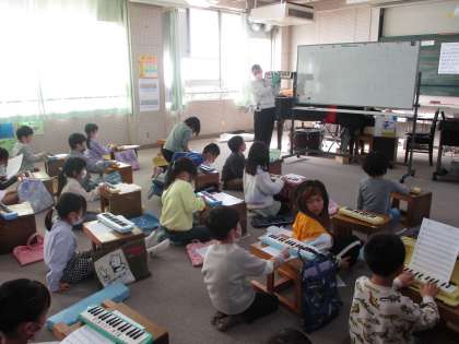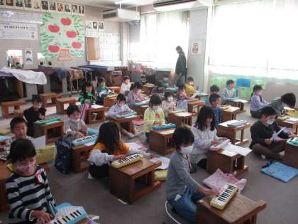 鍵盤ハーモニカで「ジングルベル」を演奏しました。