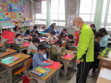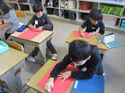 図工の時間です。「アドベンチャーカレンダー」に取り組みました。先生から作り方を説明してもらい,チャレンジ。下絵を先生に見てもらいながら,頑張ってカレンダーを制作。どんなカレンダーができるか,楽しみですね。