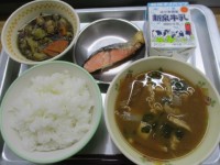 本日の献立は,ごはん,ミルク,むらくも汁,じゃがいもの磯煮,れんこんの白和えの5品です。