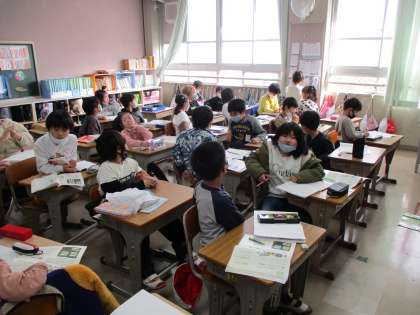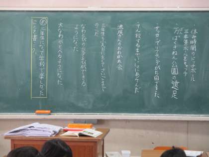 国語の時間です。「二年生にかって学校で楽しかったことを書こう」に取り組みました。みんなで楽しかったことを出し合って,悩みながらも書きました。子どもたち,どんな楽しかったことを書いたかな?