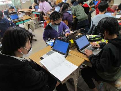社会科の時間です。「大阪府の特色のある地域」の勉強をしています。「大阪府の伝統工業」を調べています。「鯉のぼり」「三味線」など…グループでテーマを決めて取り組んでいます。大阪府の伝統工業について子どもたちから聞いて,新しい発見ばかりです。