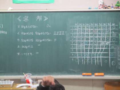 砂糖は水にどこまで溶けるか予想して,実験しました。