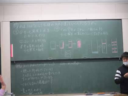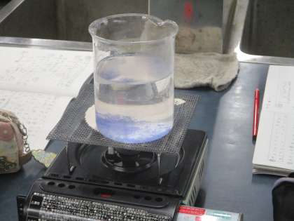水を温めた時のビーカーの中のサーモ寒天の動きを見て水の温まり方を考えました。