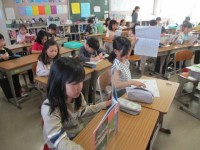 音楽の時間です。リコーダーに取り組みました。「レドシラソファミレド」にチャレンジ。高い音の「レ」が低い音の「ド」までを何回も練習しました。少し難しそうでしたが、先生のサポートもあり、うまく吹けるようになったと思います。がんばりましたね。