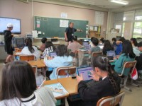 体育の時間です。「サッカー」と「大なわとび」に取り組みました。「サッカー」は、ゲームに向けてのパスの練習。自分の思ったところにパスするが難しそうでした。終わったあと「大なわとび」に全員でチャレンジ。今回は3分で215回。よくがんばりました。