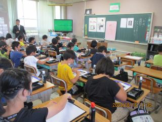 書写で毛筆にチャレンジしています。気持ちを落ち着けて集中して書いています。