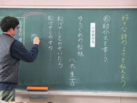 3年生の前で堂々と発表する5年生。