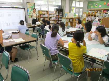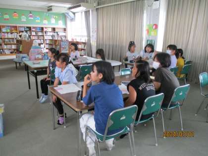 体の成長や体に合った下着について話をしてもらい,真剣に聞いていました。