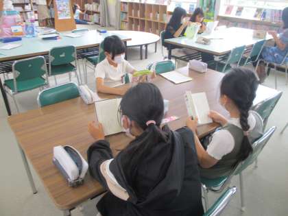 国語「作家で広げるわたしたちの読書」の学習で、友だちにすすめる本を図書室でさがしました。