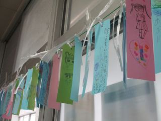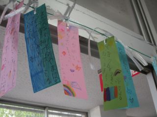 七夕の短冊に願い事を書いて、教室の扉の上の部分に並べました。