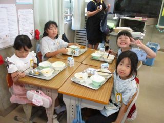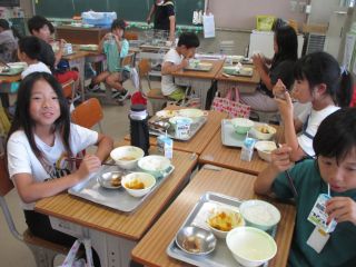 七夕献立を元気いっぱい楽しんでいる3年生。