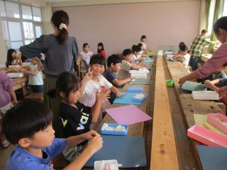粘土と粘土板をもって図工室にやってきました。何をつくろうっかな〜?
