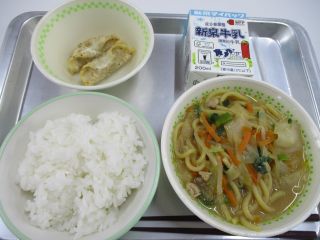 6年生の好きな給食アンケートで上位のあげ餃子と味噌ラーメンでした。