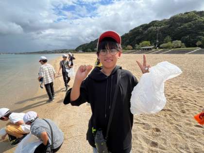 浜辺でのんびりと、貝殻もたくさん拾ってます。