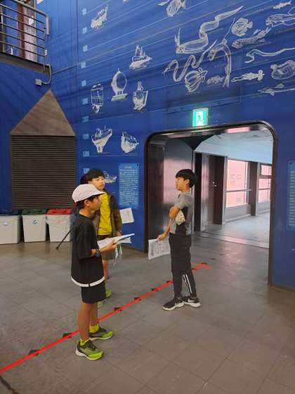 館内クイズラリーです。活動班で協力しています。