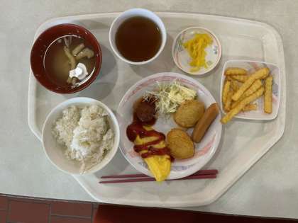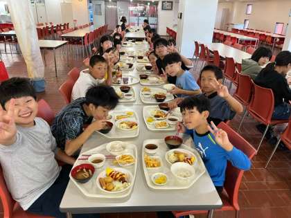 朝ごはんです。朝からしっかり食べて今日の活動も頑張ります。