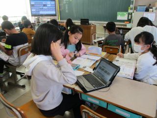 自動車産業についてPCで調べたり、グループで話し合ったり様々な形態で学習を進めています。