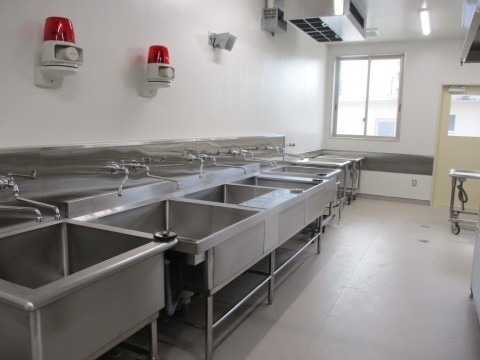 新しい給食調理場が完成して,先週の木曜日に鍵の引き渡し式がありました。どれも真新しく輝いています。