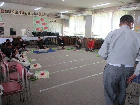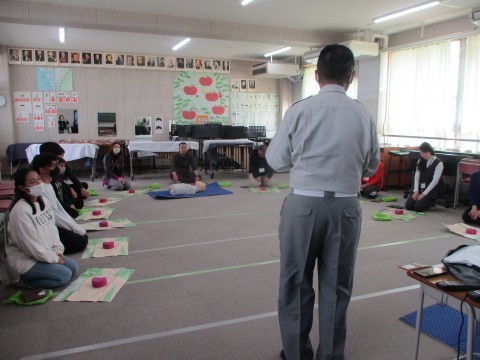 堺市消防局から講師先生を招いてAED・心肺蘇生法の講習会を実施しています。こどもたちの安全・安心のために全教職員で取り組んでいます。